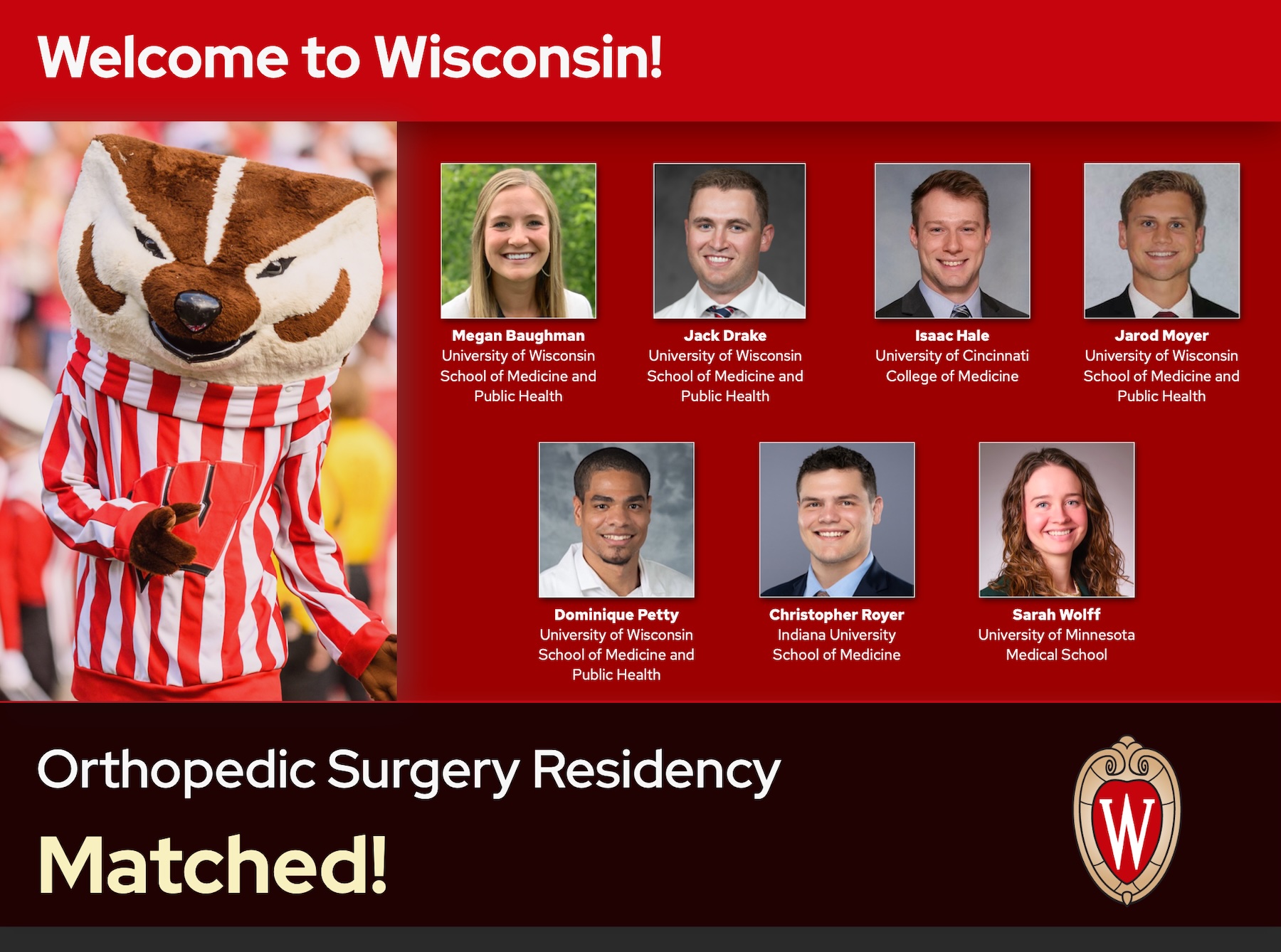 Congratulations and welcome to the University of Wisconsin School of Medicine and Public Health Department of Orthopedics and Rehabilitation family!