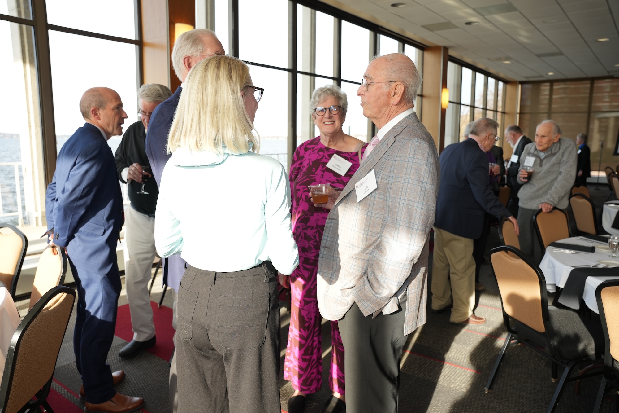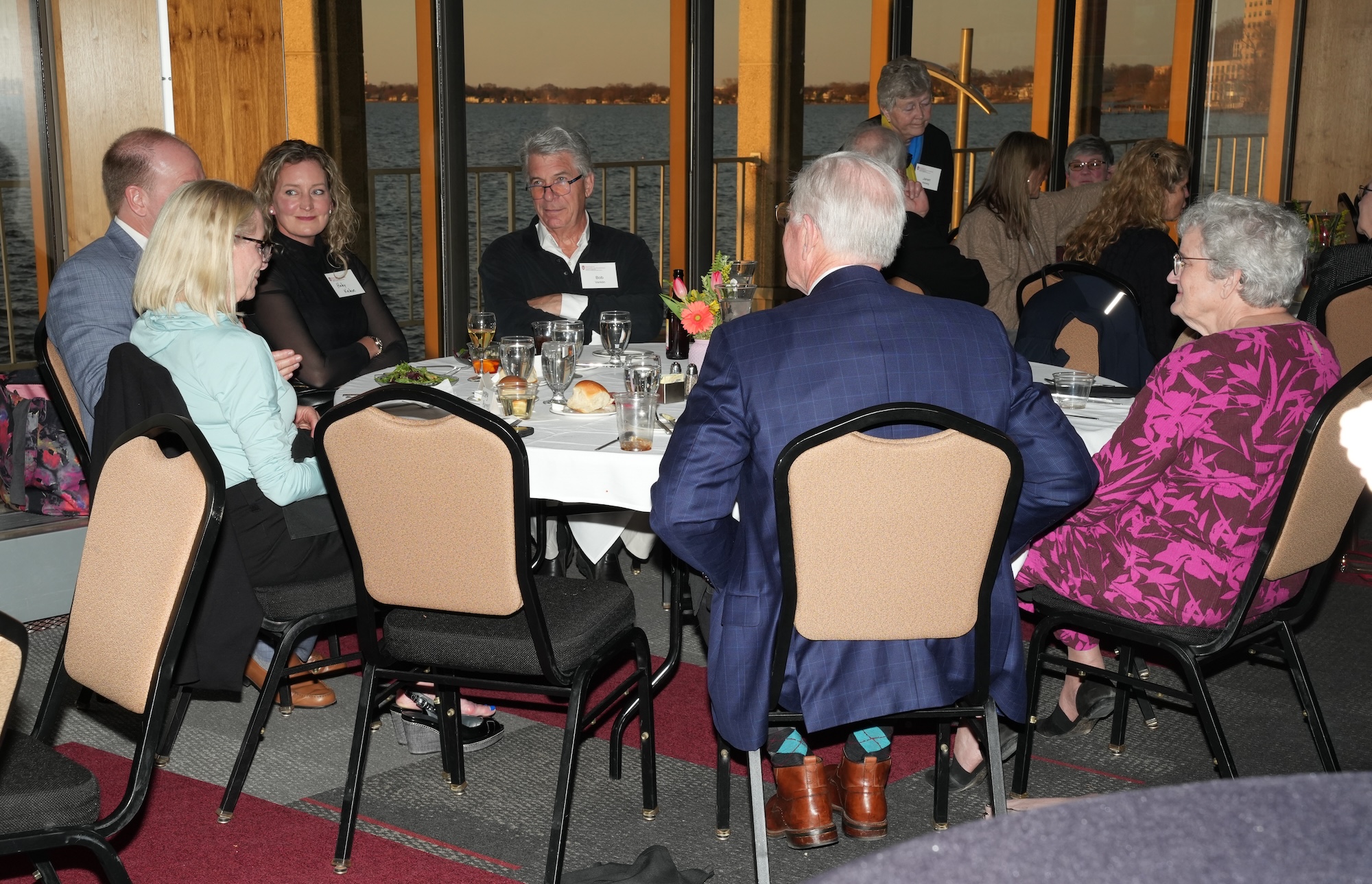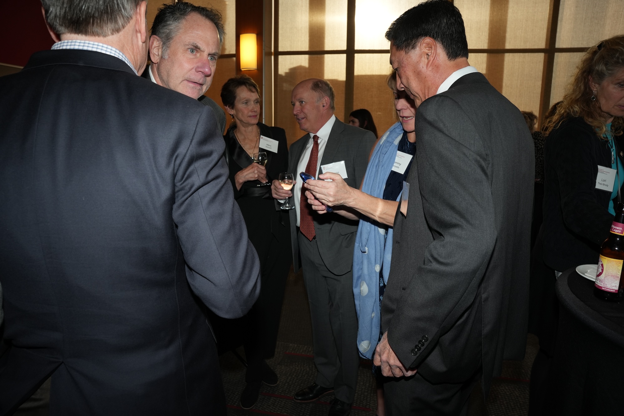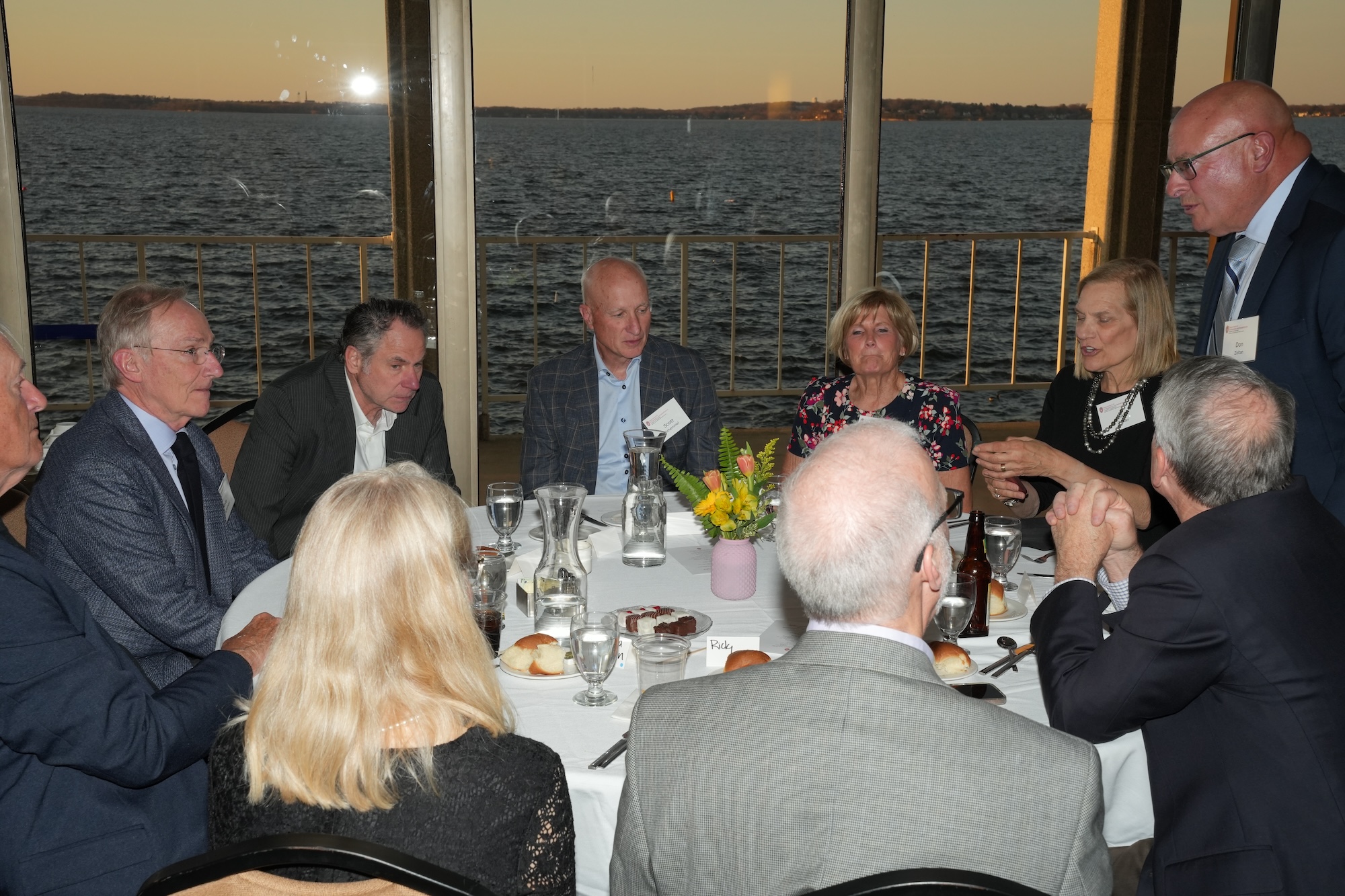 Continued socializing with drinks, coffee, and dessert