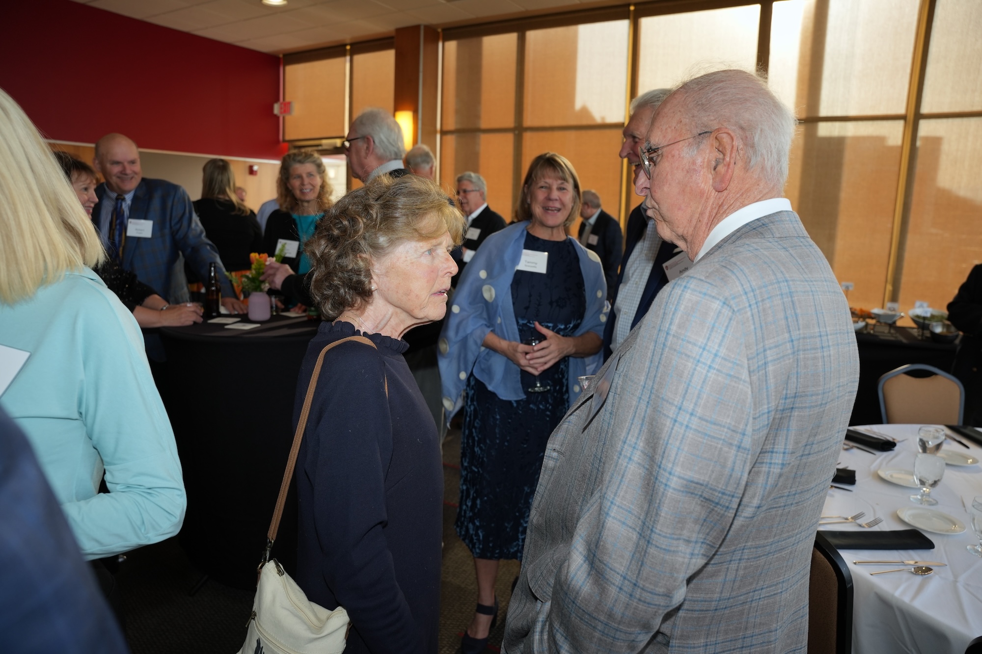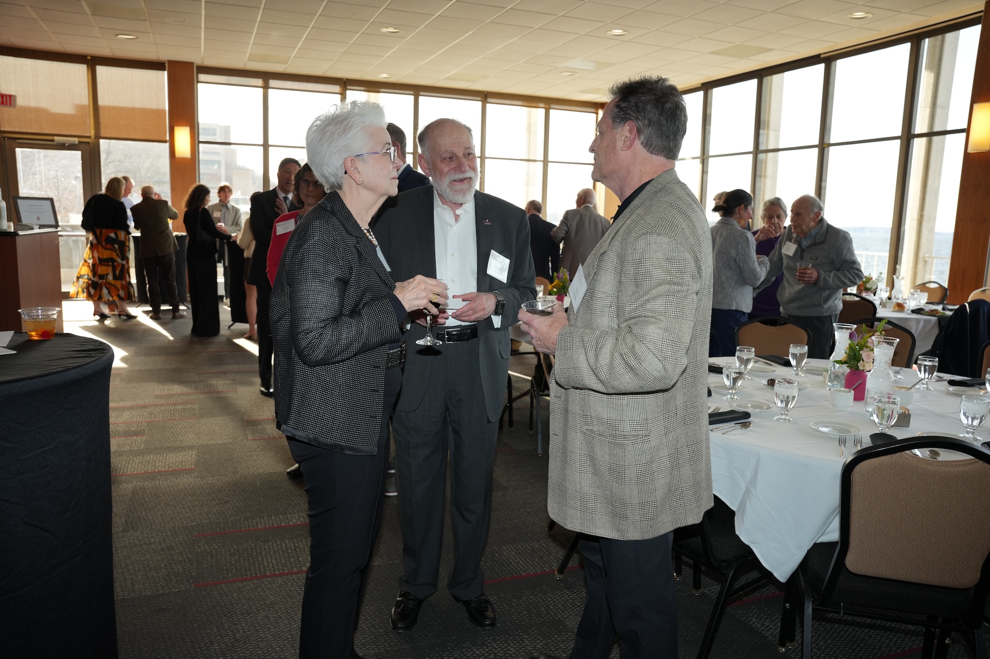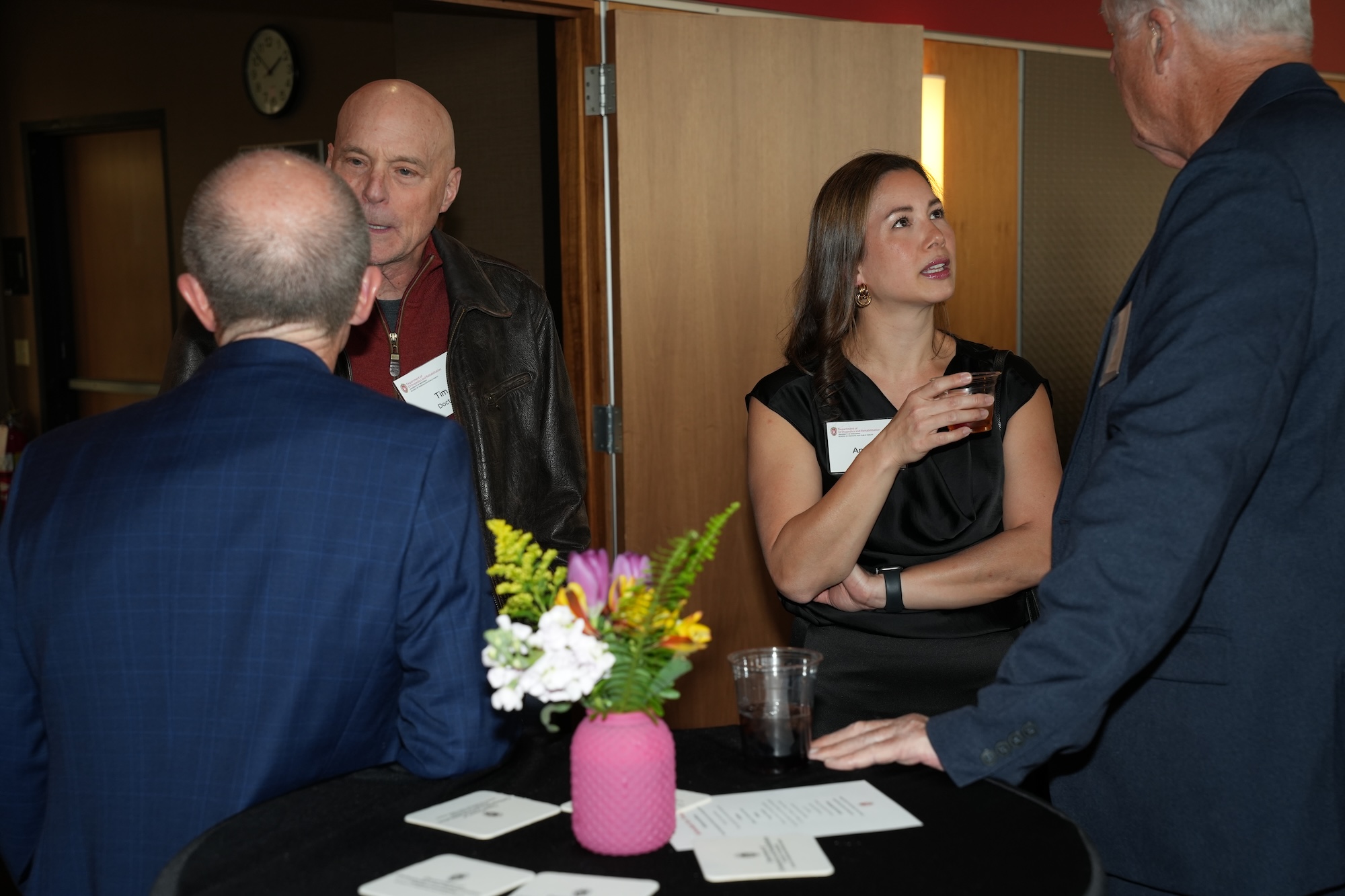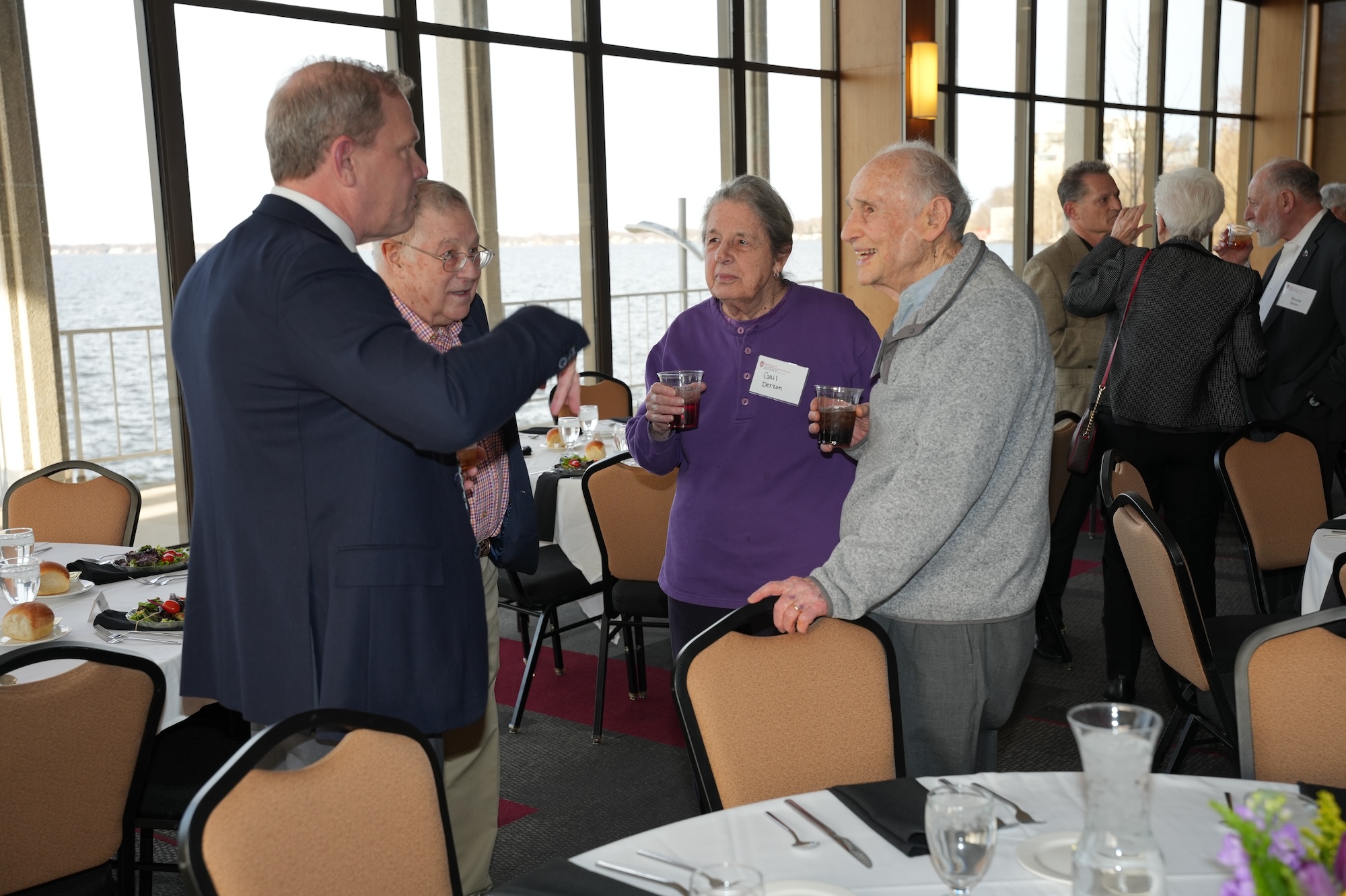 Continued socializing with drinks, coffee, and dessert