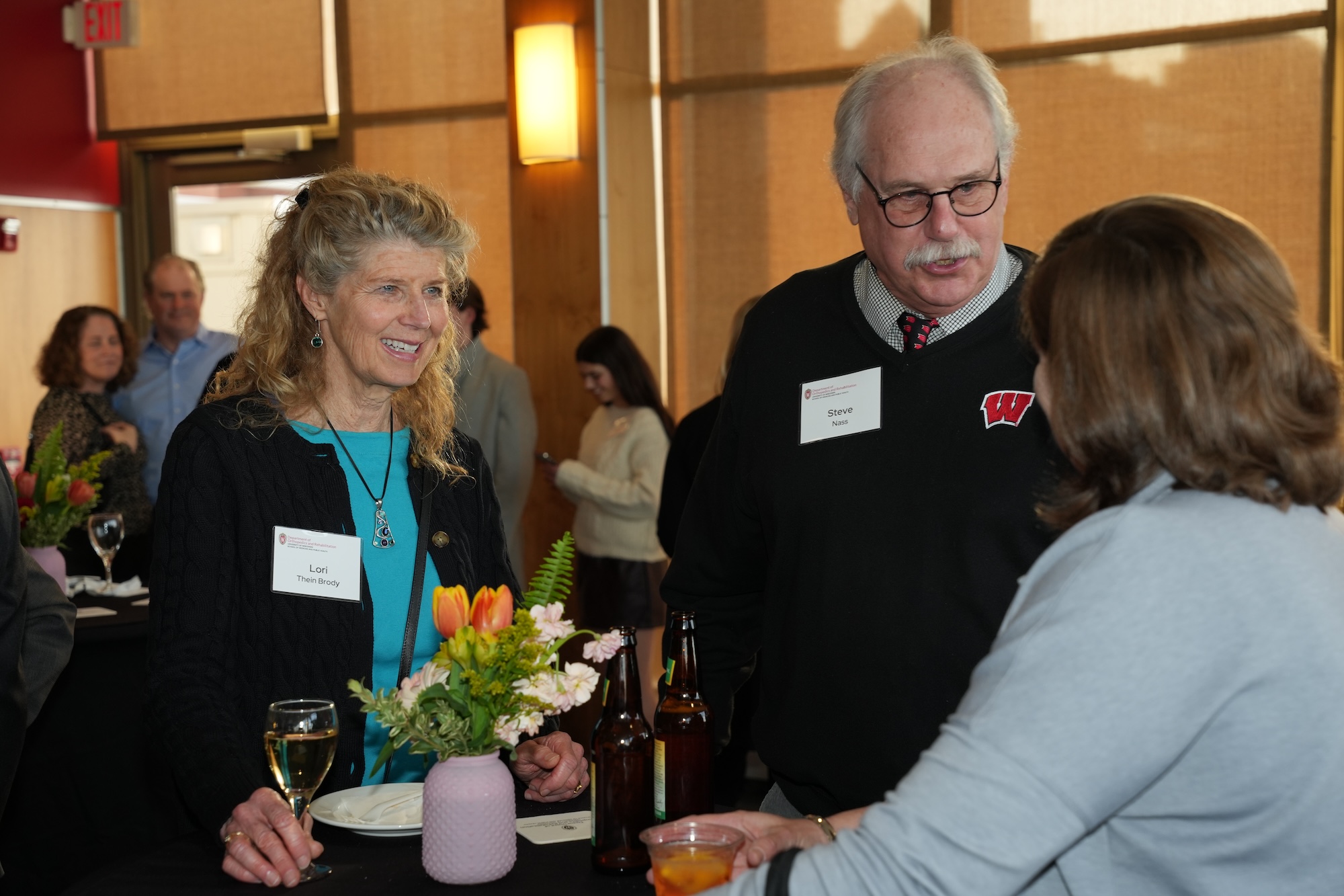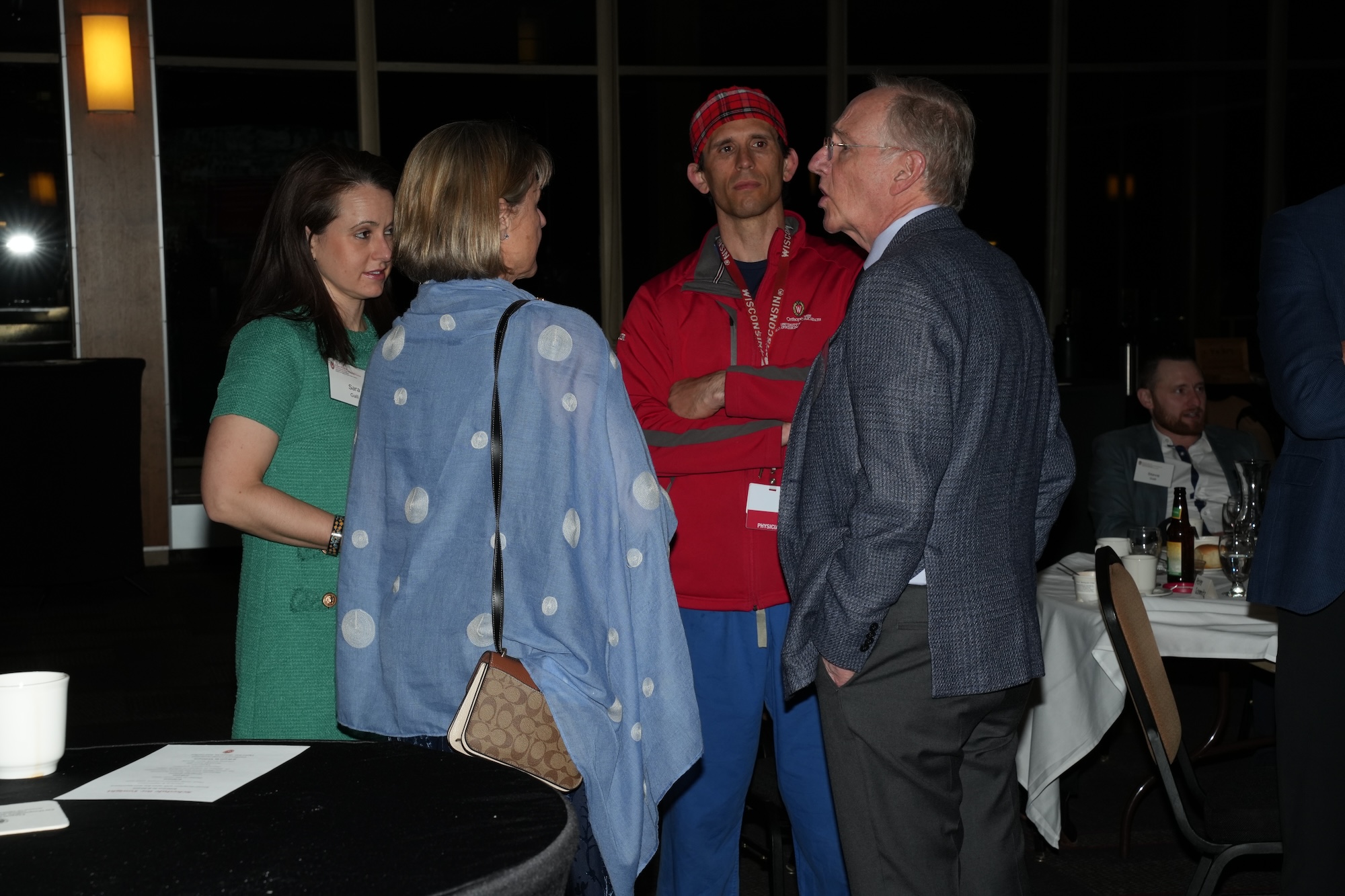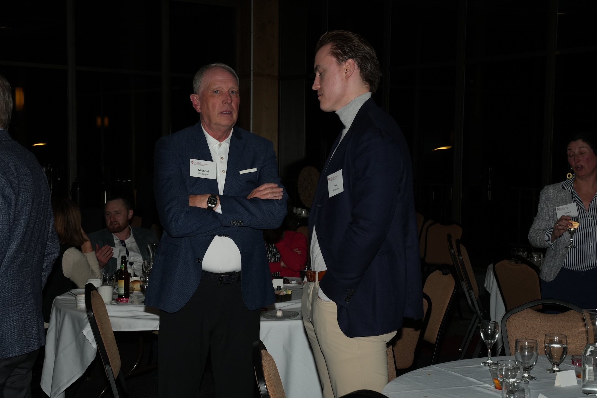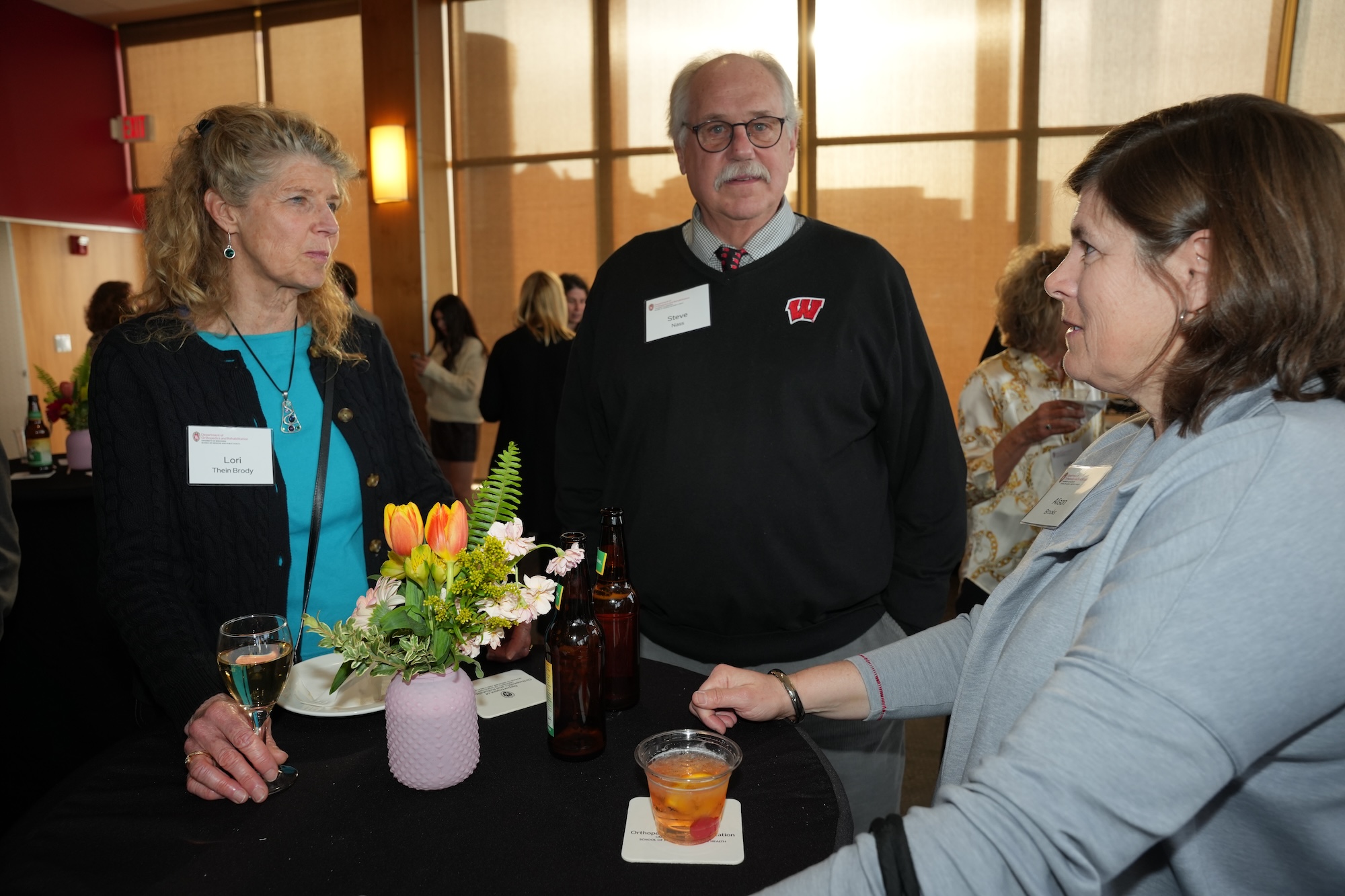 Continued socializing with drinks, coffee, and dessert