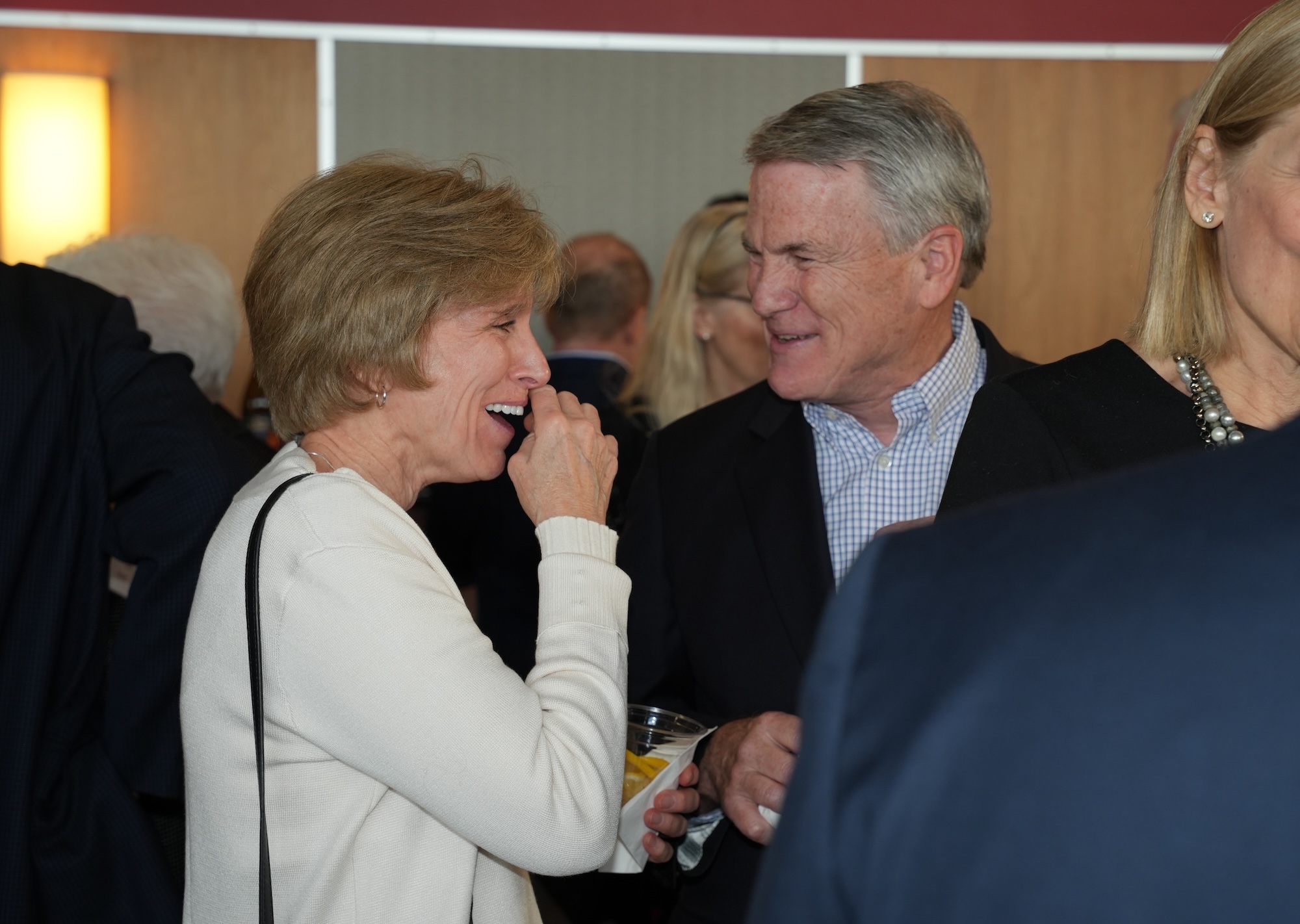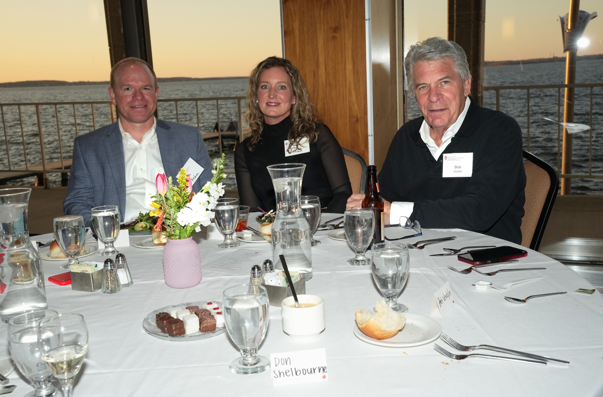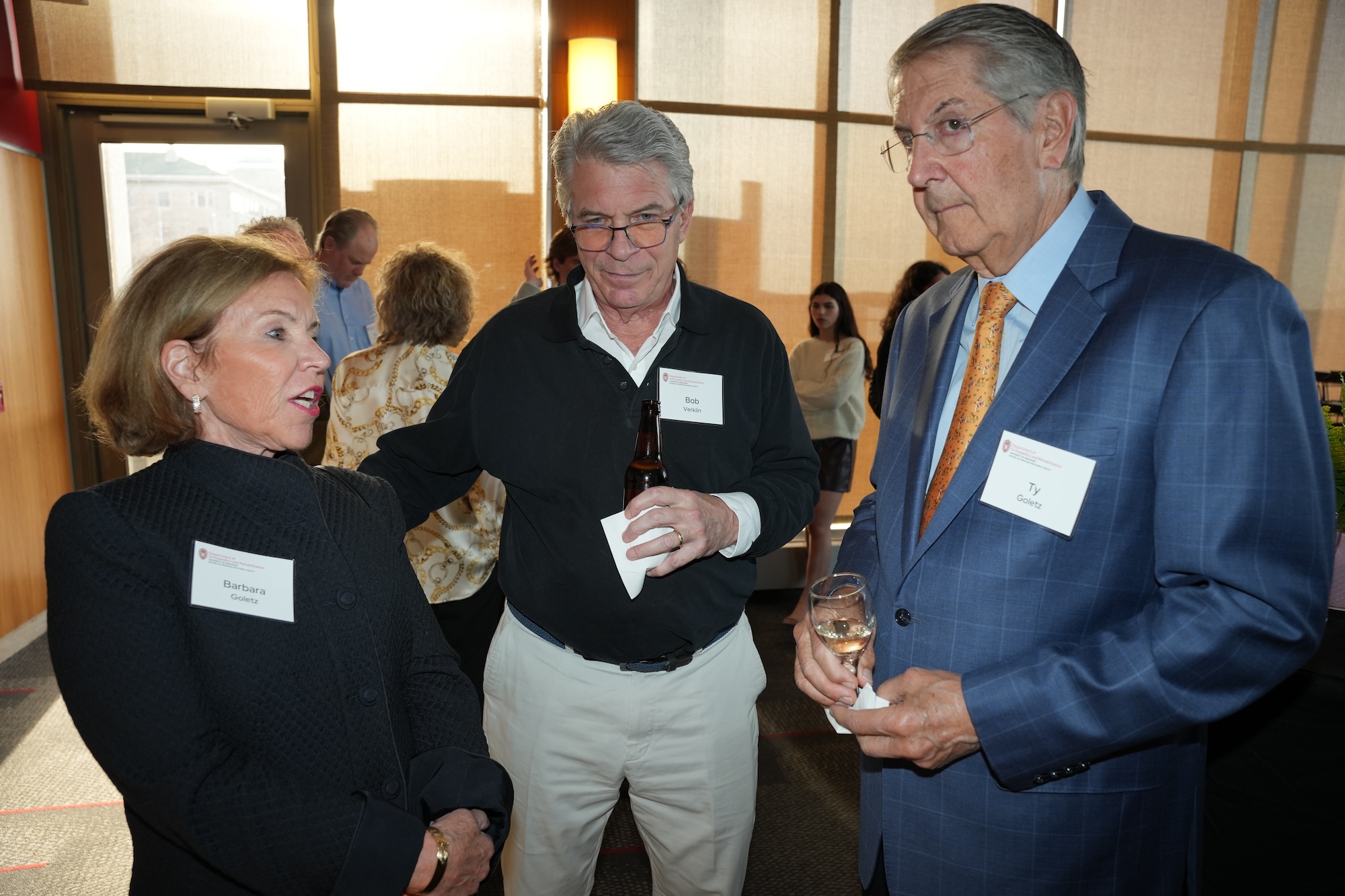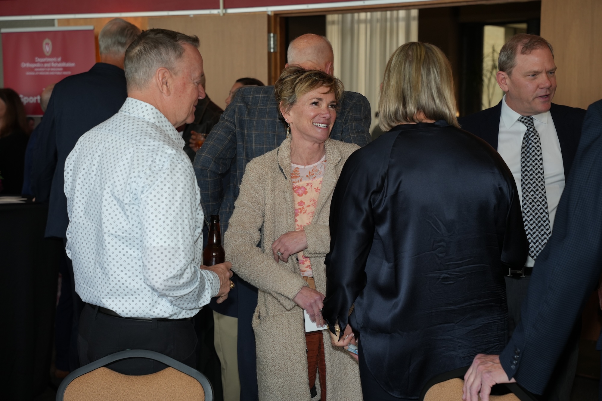 Continued socializing with drinks, coffee, and dessert